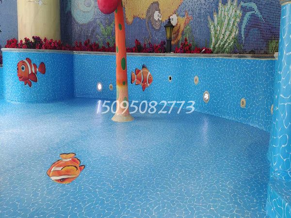 本項目位于北京市,為室內(nèi)戲水池項目,原基礎(chǔ)為馬賽克瓷磚,進行改造升級,采用1.5mm水波紋泳池膠膜,滿刮膠工藝,并且定制海洋生物,整體效果如下: